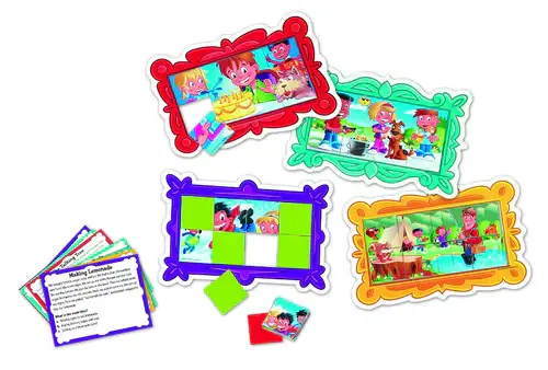 Challenge students to try their hand at the fine art of getting the main idea. This game features high-interest, paragraph-length fiction and non-fiction passages; non-fiction focuses on science and general knowledge topics. Familiarizes students with multiple-choice question format they’ll encounter on standardized free online tests and engages children with unique, art-themed game play plus the fun of unscrambling a mystery picture. The game is intended for 2-4 players and includes 4 cardboard picture frames (10″L x 7″H each), 64 picture cards, 70 self-checking question cards, 10 game play cards, card holder box and Activity Guide.