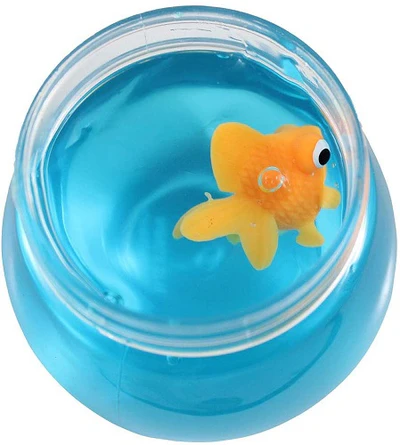 Slime is a great tactile sensory toy. Kids and/or those who need sensory stimulation love to play with wet, drippy, gooey slime. This blue slime imitates water in a goldfish bowl, and has a soft goldfish figure ‘swimming’ in it. The goldfish bowl is also a storage container for the slime.