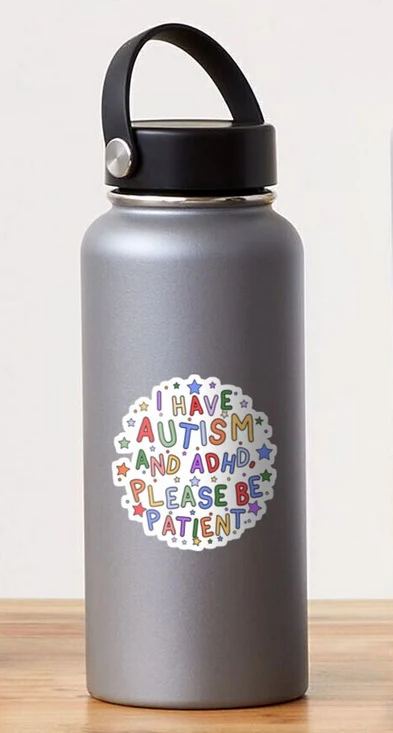 This sticker is great for individuals with Autism and ADHD! These water-resistant stickers are 3×3.1 inches and stick easily to surfaces like laptops and windows