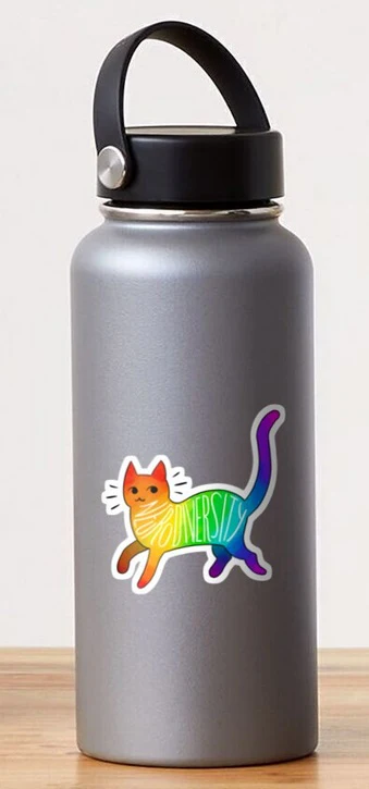Show off your pride with a Neurodiversity Cat sticker showcasing the the Neurodiversity Pride colors! These water-resistant stickers are 3.1 x 3 inches and stick easily to surfaces like laptops and windows.